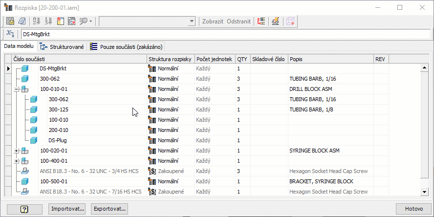 Další informace o možnostech viditelnosti komponent sestavy naleznete v části Viditelnost komponent sestavy.