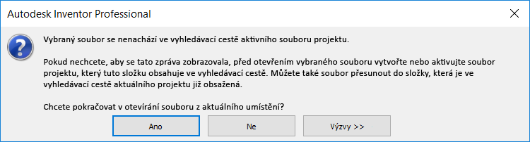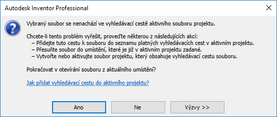 Zprávy o zpracování chyb zobrazované, když se pokusíte otevřít soubor, který není ve vyhledávací cestě aktivního projektu, byly aktualizovány a obsahují nyní podrobnější informace o tom, jak problém vyřešit: