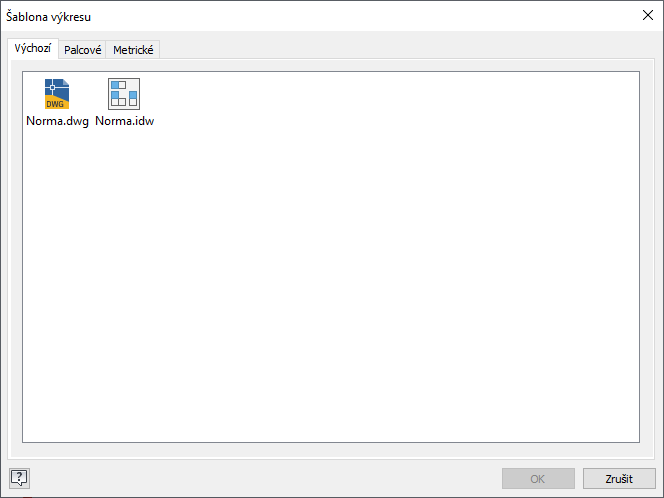 Přímý přístup k šablonám formátů listů při vytváření nového výkresového souboru
