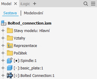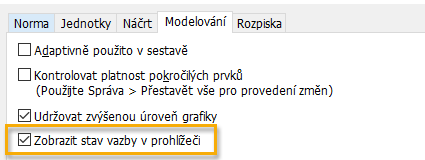 Další informace naleznete v částech Práce s prohlížečem sestavy a Karta Modelování (nastavení dokumentu) – reference.