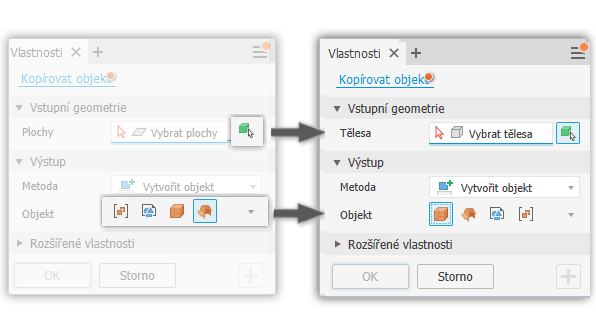Další informace o příkazu Kopírovat objekt naleznete v části Kopírování objektů mezi prostředími součásti, sestavy a konstrukčním prostředím.
