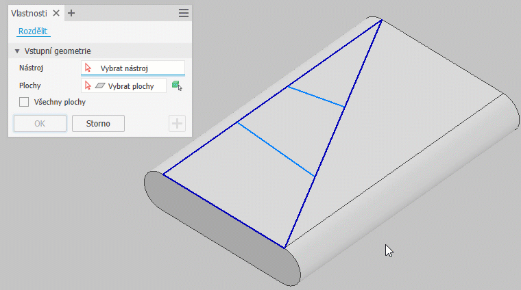 Další informace o příkazu Rozdělit naleznete v části Kombinování nebo dělení těles a ploch.