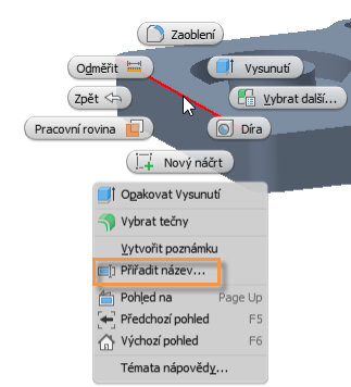 - V souboru součásti klikněte pravým tlačítkem na geometrii, která je nebo bude spojena vazbou s jinou součástí, a vyberte možnost Přiřadit název.