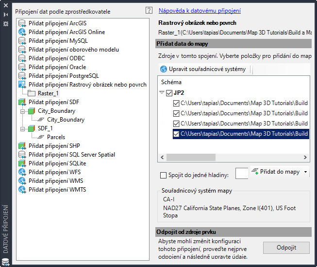 - Pod položkou Připojení dat podle zprostředkovatele vyberte položku Přidat spojení Rastrový obrázek nebo povrch.
