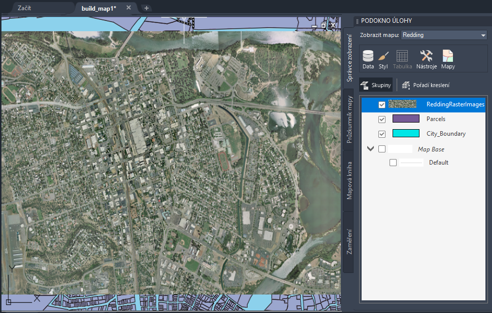 Poznámka: V tomto cvičení se používá mapa build_map1.dwg, kterou jste vytvořili a upravili v předchozích cvičeních.