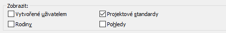Standardy projektu. Obsahuje všechna nastavení platná pro celý projekt a definovaná pro projekt (například styly čar a vzory výplně). Pracovní sady standardů projektu není možné přejmenovat nebo odstranit.