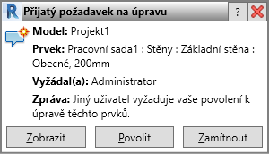 K usnadnění komunikace při práci na sdílených projektech obdrží členové týmu automatické oznámení o vyžádání, povolení nebo zamítnutí požadavků na vypůjčení prvků.