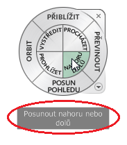 | Rychlostní faktor | Při použití tohoto nástroje k procházení nebo průletu modelem můžete ovládat rychlost pohybu. Rychlost pohybu je určena vzdáleností ukazatele myši od ikony středového kruhu. Zde můžete nastavit rychlost pohybu.
