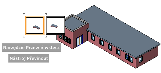 Pomocí nástroje Převinout lze z navigační historie zobrazit dřívější pohledy. Z historie navigace lze obnovit dřívější pohled nebo rolováním procházet všechny uložené pohledy.