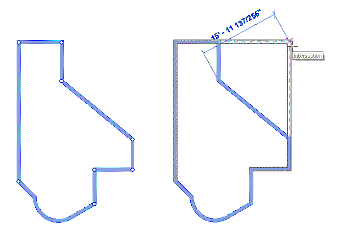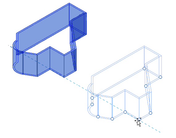 Po výběru řetězce stěn nebo čar můžete pomocí ovládacích prvků pro přetažení zobrazených ve shodných koncových bodech provést některé z následujících úprav, aniž by bylo nutné odpojit prvky řetězce: