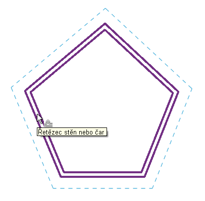 - Přesunutím kurzoru podle potřeby zobrazte čáru náhledu v požadované pozici odsazení a potom kliknutím přesuňte prvek nebo řetězec na dané místo nebo na toto místo vložte kopii. Pokud jste vybrali možnost Grafický, kliknutím vyberte zvýrazněný prvek a potom jej přetáhněte do požadované vzdálenosti a znovu klikněte. Jakmile začnete přetahovat prvek, zobrazí se dočasná kóta, kde můžete zadat konkrétní vzdálenost odsazení.