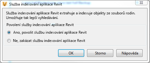 Jakmile je balíček modulu plug-in aplikace Revit nainstalován, lze povolit Službu indexování aplikace Revit.