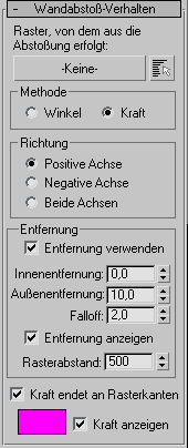 Zeigt die Farbe an, in der die Wandabstoßkraft während der Lösung gezeichnet wird. Klicken Sie auf das Feld, um eine andere Farbe zu wählen. Vorgabe = Violett.
