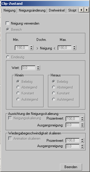 Skaliert die Animation des Clips abhängig von der Neigung.
