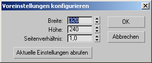 Wenn Sie ein Standardformat verwenden, werden die Zahlenauswahlfelder "Breite" und "Höhe" am Standard-Bildseitenverhältnis festgemacht, und das Zahlenauswahlfeld "Seitenverhältnis" wird durch eine Textanzeige ersetzt.