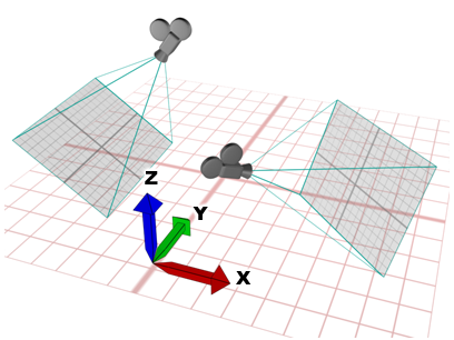 Verwendet das Weltkoordinatensystem. In der Ansicht von vorn gilt: