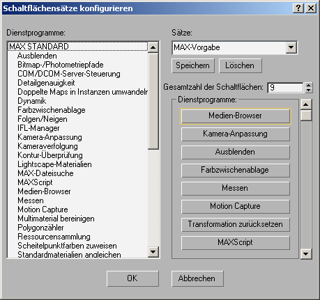 3ds Max aktualisiert das Rollout "Dienstprogramme". Sie können die Schaltfläche ändern, ohne sie zu speichern. Wenn Sie jedoch eine neue Schaltfläche unter einem neuen Namen speichern, können Sie diese später wiederverwenden.