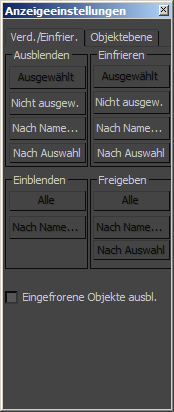 Die Anzeigeeinstellungen enthält zwei Registerkarten: "Ausblenden/Einfrieren" und "Objektebene".