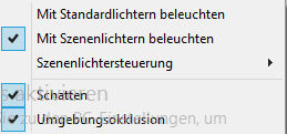 Zeigt ein Untermenü mit Optionen für die Vorschau von Beleuchtung und Schatten in Ansichtsfenstern an. Weitere Informationen finden Sie unten.