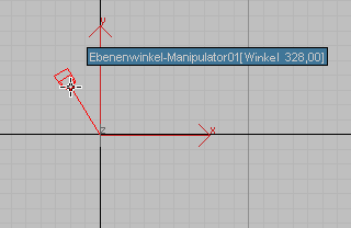 Der Ebenenwinkel-Manipulator wird immer vertikal erstellt, d. h. entlang der Y-Achse des Ansichtsfensters, in das Sie die Maus ziehen.