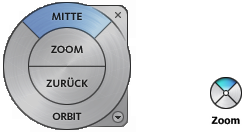 Das Rad für die Objektansicht ist für die allgemeine 3D-Navigation gedacht. Es beinhaltet das Umkreisen-Hilfsmittel für die 3D-Navigation. Mit dem Rad für die Objektansicht können Sie 3D-Objekte von außen untersuchen.