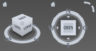 Der ViewCube-Kompass zeigt die Nordrichtung für die Szene an. Sie können über die Kompass-Einstellungen die Anzeige des Kompass unter dem ViewCube ein- und ausschalten und die Ausrichtung des Kompass festlegen.