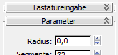 Rollouts sind Bereiche in den Befehlsgruppen und den Dialogfeldern, die Sie einblenden (ausrollen) oder ausblenden (einrollen) können, um den Platz auf dem Bildschirm besser einzuteilen. In der vorherigen Abbildung wurde das Rollout "Tastatureingabe" ausgeblendet, was durch die nach unten zeigenden Pfeile (oder das Pluszeichen) angezeigt wird, und das Rollout "Parameter" erweitert, was durch die nach oben zeigenden Pfeile (oder das Minuszeichen) angezeigt wird.