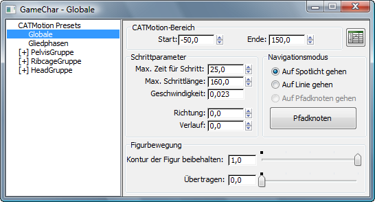 Der Bereich "Globale" enthält die Haupteinstellungen für den aktuellen CATMotion-Layer.