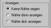 Diese Einstellung bestimmt, ob und wie Unregelmäßigkeiten beim Mapping (auch als "Nähte" bezeichnet) in den Ansichtsfenstern angezeigt werden. Die Nähte werden nur eingeblendet, wenn die Unterobjektebene "Gizmo" aktiv ist.