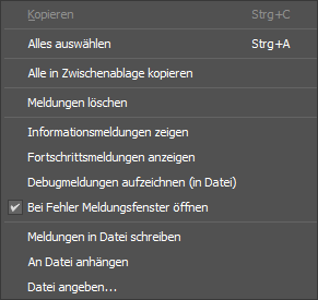 Die anderen Optionen der Protokolldatei sind erst aktiviert, wenn die Option "Meldungen in Datei schreiben" aktiviert ist: