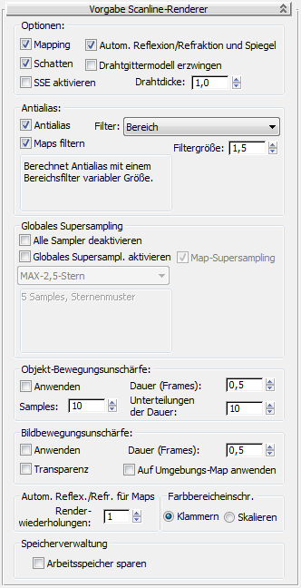 Rollout "Vorgabe-Scanline-Renderer"