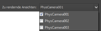 - Wählen Sie Ansichten aus, die Sie rendern möchten. Mit 3ds Max rendert Autodesk Rendering nur Kameraansichten. Durch Klicken auf "Rendern" können Sie ein Rendering von mehr als einer Kameraansicht starten.