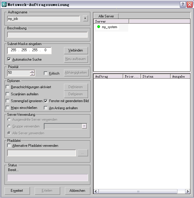 3ds Max öffnet das Dialogfeld Netzwerk-Auftragszuweisung.