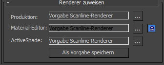 Im Rollout wird für jede Renderkategorie der Name des derzeit zugewiesenen Renderers sowie eine Schaltfläche angezeigt, mit der Sie die Zuweisung ändern können.