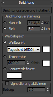 Wenn eine andere Belichtungssteuerung aktiv ist, sind die anderen Steuerelemente in diesem Rollout deaktiviert.