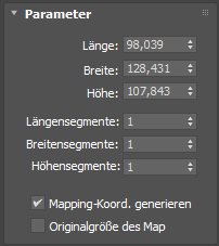 Rollout "Parameter" die folgenden Parameter für den Quader fest: