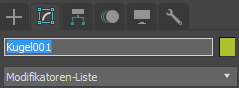 - Doppelklicken Sie in der Modifikatorgruppe im Feld "Objektname" den Namen Sphere001, um ihn zu markieren.