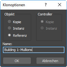 Bereich Objekt die Option "Referenz". Ändern Sie den Namen des Objekts in Gebäude 1 - Pfosten um, und klicken Sie anschließend auf "OK".