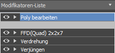Sie möchten nun die Polygone, die das Fenstergitter bilden, so verändern, dass sie die Eigenschaften von Pfosten annehmen. Dies geschieht mithilfe des Modifikators "Poly bearbeiten".