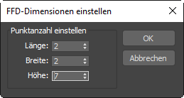 - Stellen Sie im Dialogfeld "FFD-Dimensionen einstellen" die folgenden Parameter ein, um die Anzahl der Steuerpunkte festzulegen, die das Gitter zur Deformierung der Struktur verwendet: