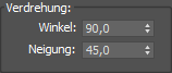 Bereich "Verdrehen" den Wert für "Winkel" auf 90,0 und den Wert für "Neigung" auf 45,0 fest.