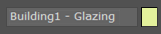 - Ändern Sie im Rollout "Name und Farbe" oben in der Modifikatorpalette den Namen des Objekts in Gebäude 1 - Glas.