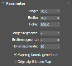Rollout "Parameter" die folgenden Parameter für den Quader fest: