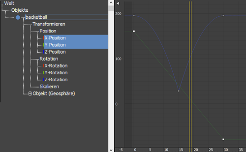 Meistens prallt ein springender Ball nicht nur einmal vom Boden ab. Der Kurveneditor gibt Ihnen die Möglichkeit, den ersten Sprung zu wiederholen.