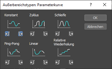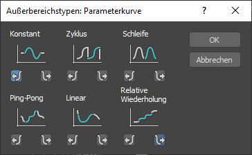 3ds Max öffnet das Dialogfeld "Außerbereichstypen für Parameterkurve".