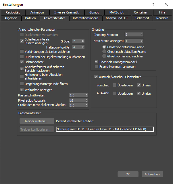 Zeigen Sie Ghosting an, um die Animationsdarstellung in den Ansichtsfenstern zu verbessern: