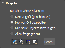 Wie Sie gesehen haben, können Sie einzelne Spuren für Objekte in einem Container sperren. Wenn Sie jedoch die Regel "Nur an Ort und Stelle bearbeiten" verwenden, kann der übernehmende Benutzer Ihre Sperre ohne Weiteres aufheben. Wenn Sie aber eine andere Regel verwenden, ist er an Ihre Sperren gebunden, es sei denn, Sie revidieren diese.