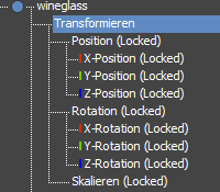 Der Eintrag "Transformieren" und alle untergeordneten Objekte (die Zweige und Blätter) zeigen jetzt den Hinweis "(Gesperrt)" nach ihrem Namen in der Hierarchie der Spuransicht an.