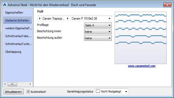 | Profilklasse | Hier wählen Sie den Profiltyp für die Fassadenprofile. |