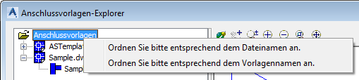 Im Anschlussvorlagen-Explorer haben Sie folgende Möglichkeiten: